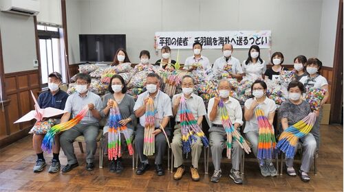 核兵器禁止条約に日本も参加し、早期に核も原発も廃絶を 8月5日(木) 「“平和の使者” 千羽鶴を海外へ送るつどい」 集合写真 8月5日「“平和の使者”千羽鶴を海外へ送るつどい」を開催し、20人が参加しました。 10万羽の千羽鶴 毎年、原爆投下の日またはその前…